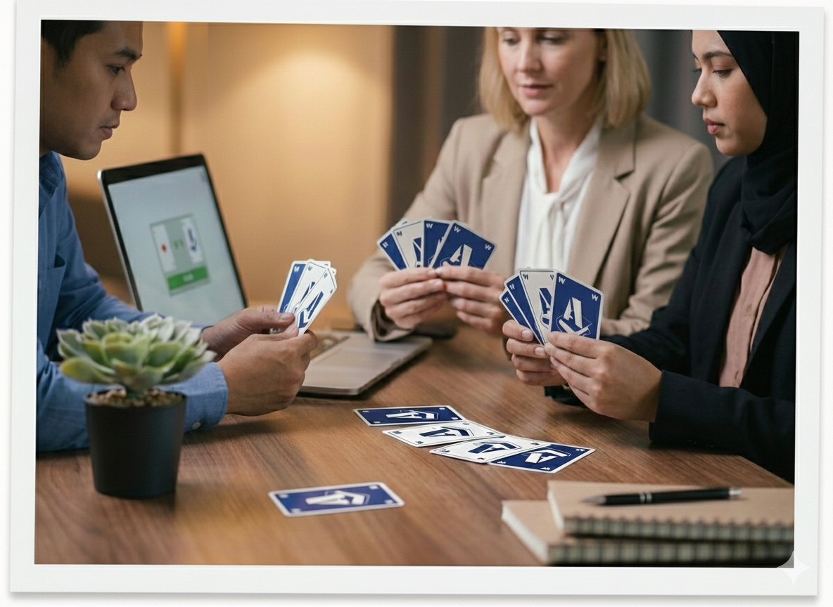 Seul ou en équipe, les participants issus d’une équipe de Direction utilisent les cartes (pour qualifier différents concepts d’innovation et d’aligner sur la définition de ce mot.